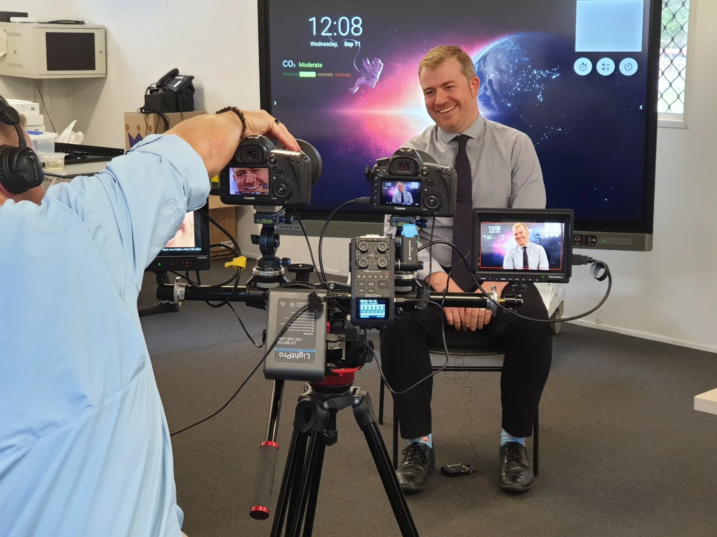 Asking the right questions to your interviewees helps inspire those golden clips and influential testimonials that are essential for a successful case study. It's no secret that sitting in front of a camera and remembering all your lines can be difficult, so do your best to make them feel comfortable and confident. You can do this by having some well thought out questions prepared in advance, helping you stay on track as well as keeping the schedule moving seamlessly. However, be cautious when prepping your customers with questions before the shoot. Sometimes it can help with settling nerves, other times it will overwhelm them with the stress of memorised responses. Ask some warm up questions that will be easy to answer. Something as simple as "what did you have for breakfast today?" can take the pressure off.
